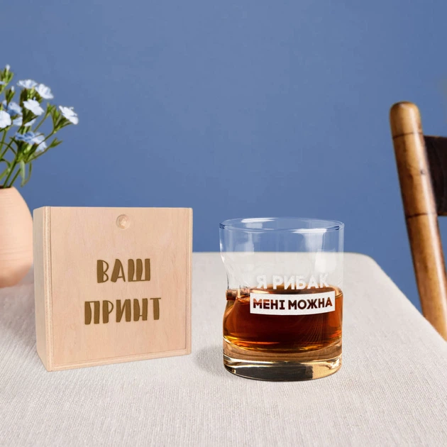 Склянка з кулею "Я рибак мені можна" у дерев'яній подарунковій коробці з гравіюванням 4933933