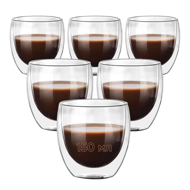 Набір склянок з подвійними стінками для кави, чаю 6х150 мл, склянки з подвійним дном термостійкі