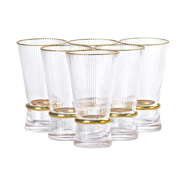Набір склянок 6 штук 400 мл для лимонаду води соку коктейлів прозорі високі із золотим обідком (523542)