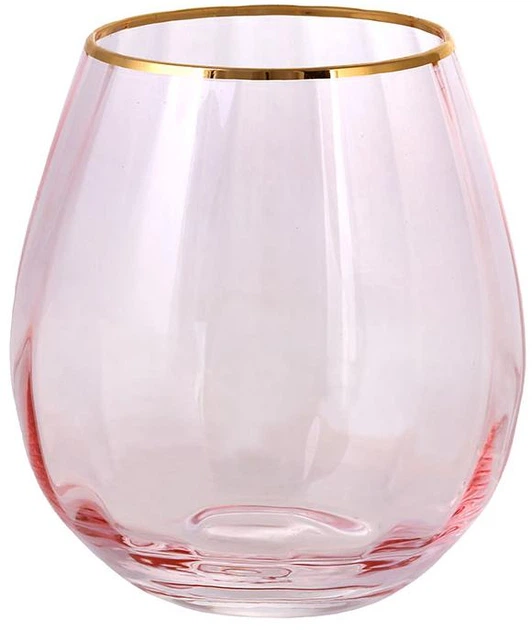 Набір 6 скляних склянок "Margarita" 400мл, рожеве скло із золотою облямівкою