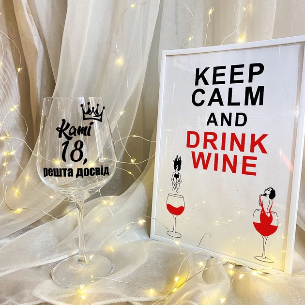 Винний келих на подарунок з дизайном "Каті 18, решта досвід" 450 мл