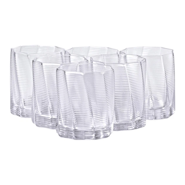 Склянка для напоїв висока фігурна прозора ребриста з скла набір 6 шт