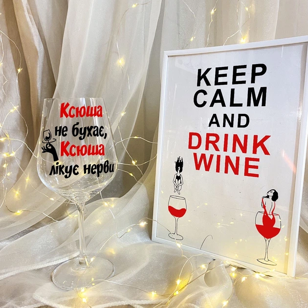 Винний келих на подарунок із дизайном "Ксюша не бухає, Ксюша лікує нерви" 450 мл