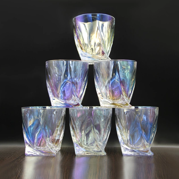 Набір стаканів для віскі Bohemia Quadro 340 мл 6 шт райдуга