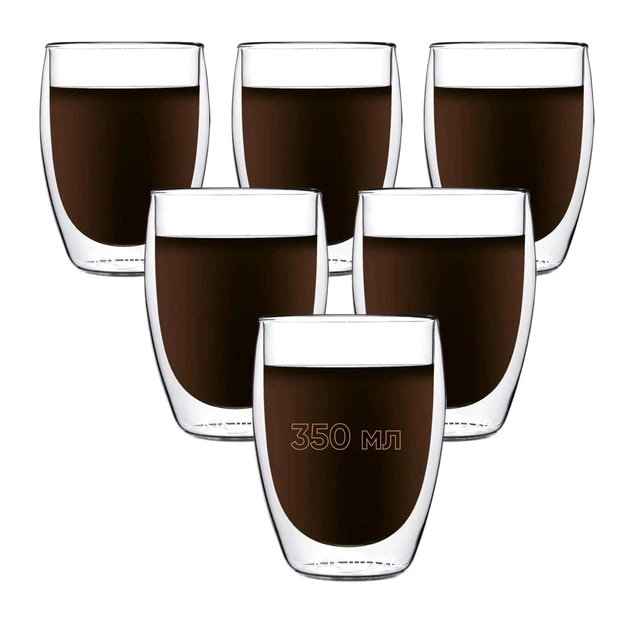 Набір склянок з подвійними стінками для кави, чаю 6х350 мл, склянки з подвійним дном термостійкі