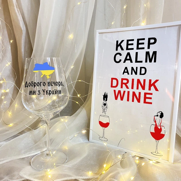 Винний келих зі слоганом "Доброго вечора, ми з України" 450 мл