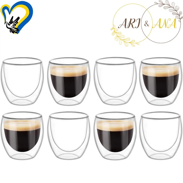 Набір склянок із подвійними стінками для американо, еспресо 250мл Ari&Ana 8шт, склянка з подвійним дном