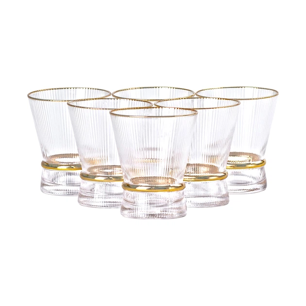 Набір склянок 300 мл для лимонаду та коктейлів скляні 6 штук із золотим обідком для сервірування столу (523538)