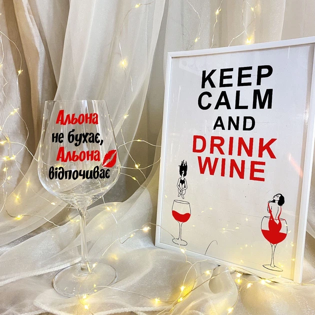 Винний келих на подарунок із дизайном "Альона не бухає, Альона відпочиває" 450 мл