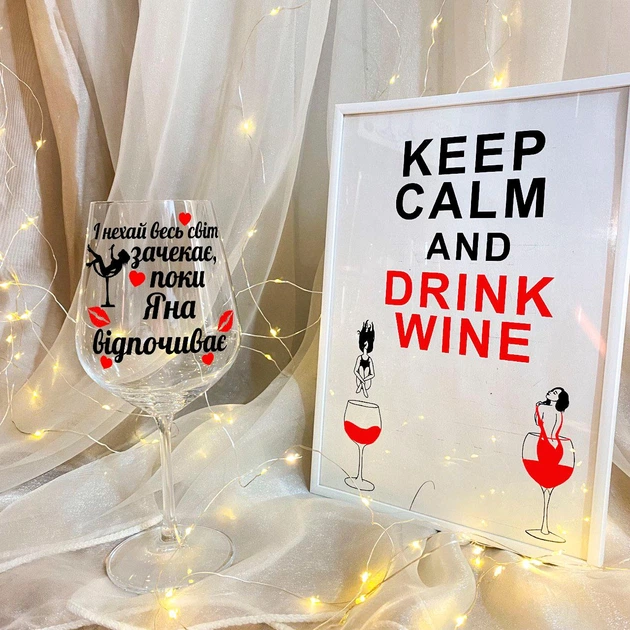 Винний келих на подарунок з дизайном "І нехай весь світ зачекає, поки Яна відпочиває" 450 мл