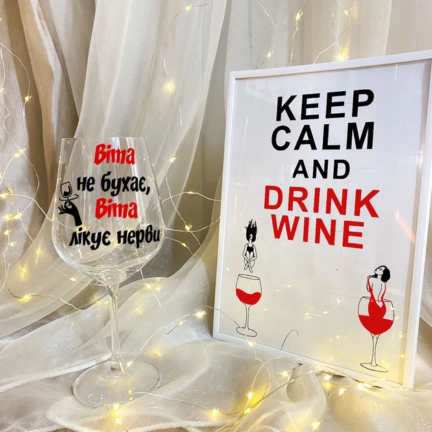 Винний келих на подарунок із дизайном "Віта не бухає, Віта лікує нерви" 450 мл