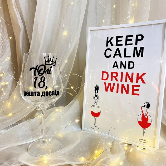 Винний келих на подарунок з дизайном "Яні 18, решта досвід" 450 мл