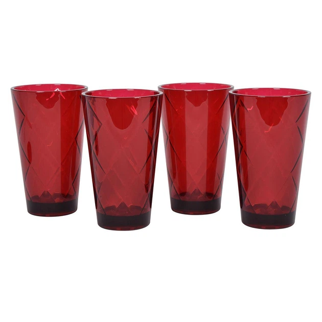 Набір високих склянок в рубіновому кольорі "Діамантові грані" Certified International, 4 шт.