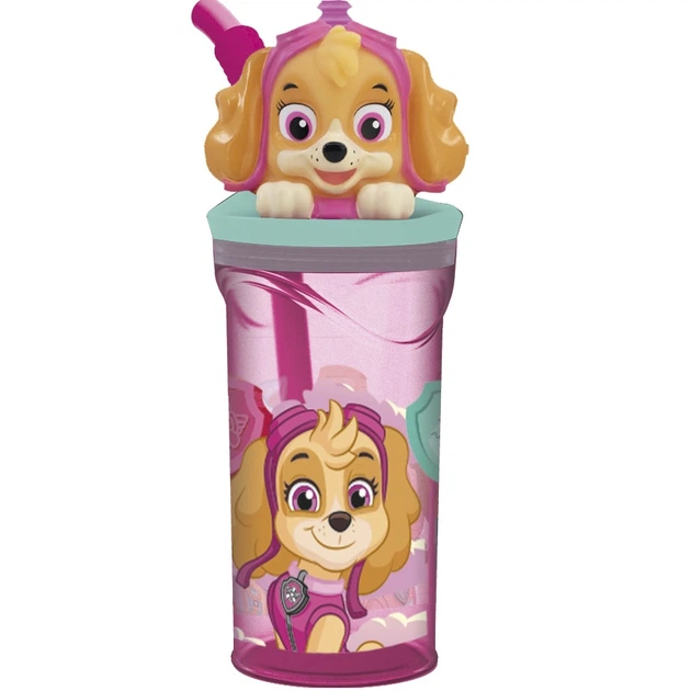 Склянка пластикова з інтегрованою соломинкою та 3D-декорацією 360мл "Paw patrol girl superpowers" 81866 Stor
