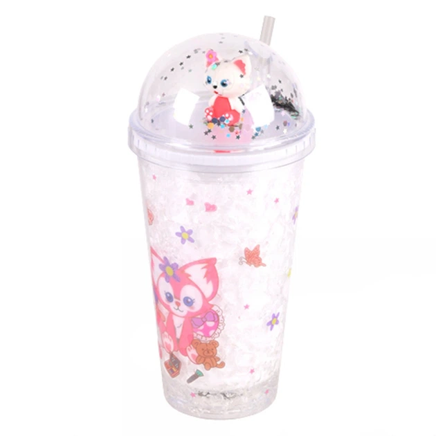 Склянка акрилова дитяча з трубочкою холодоагент охолоджуючий Ведмедик 450 мл 16х9,5 см Жовта U01-42-3