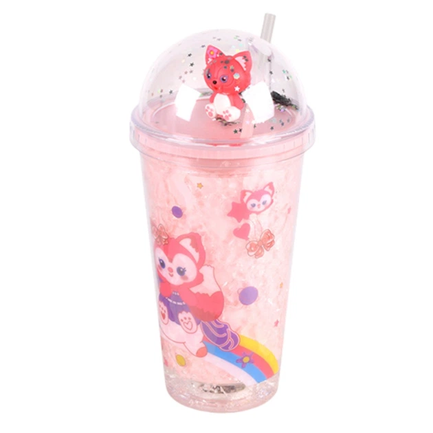 Склянка з подвійними стінками та трубочкой For Kids R100185 450 мл Рожевий