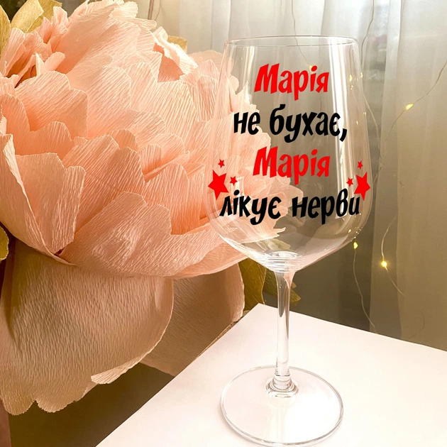 Келих для вина з написом "Марія не бухає, Марія лікує нерви"
