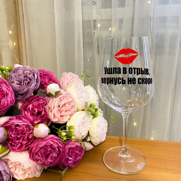 Келих для вина з написом "Пішла у відрив, повернуся не скоро" (ART366)