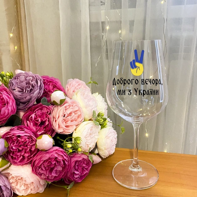 Патріотичний келих для вина з написом "Доброго вечора ми з України"
