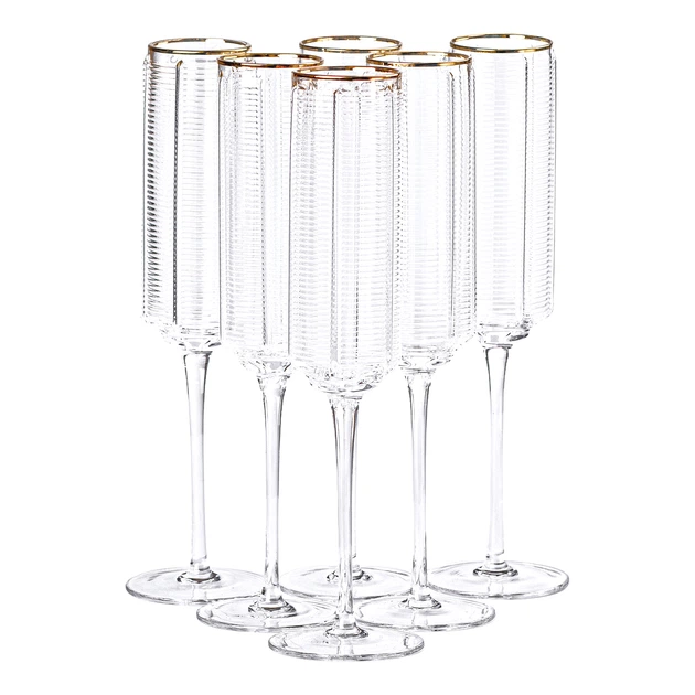 Келихи для шампанського 300 мл набір із 6 штук скляні із золотим обідком для свят та урочистостей (523546)