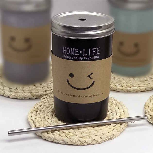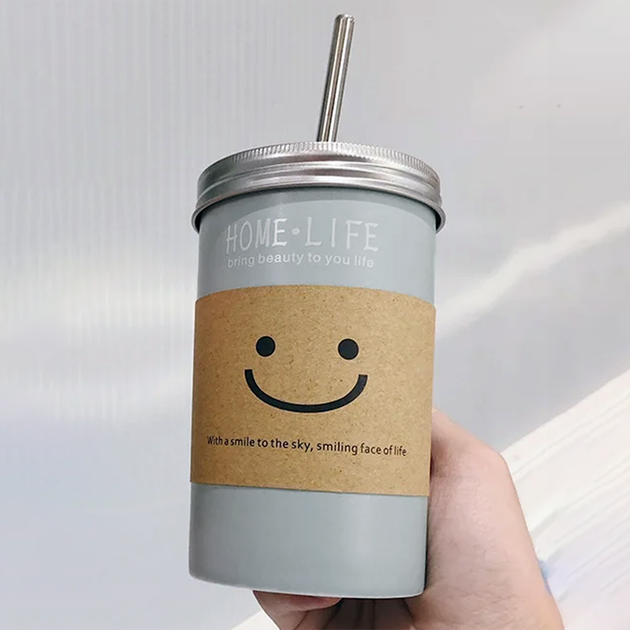 Стакан з кришкою і трубочкою керамічний "Смайл", 500мл (Стакан для кави) Сірий