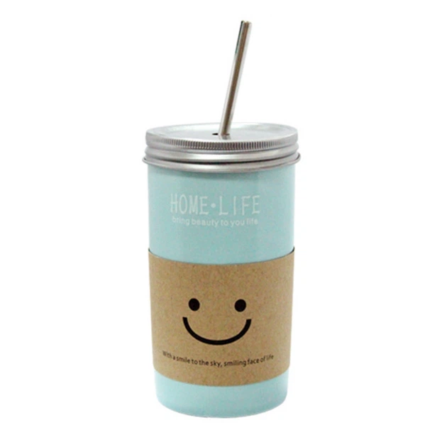 Стакан з кришкою і трубочкою керамічний "Смайл", 500мл (Стакан для кави) Блакитний