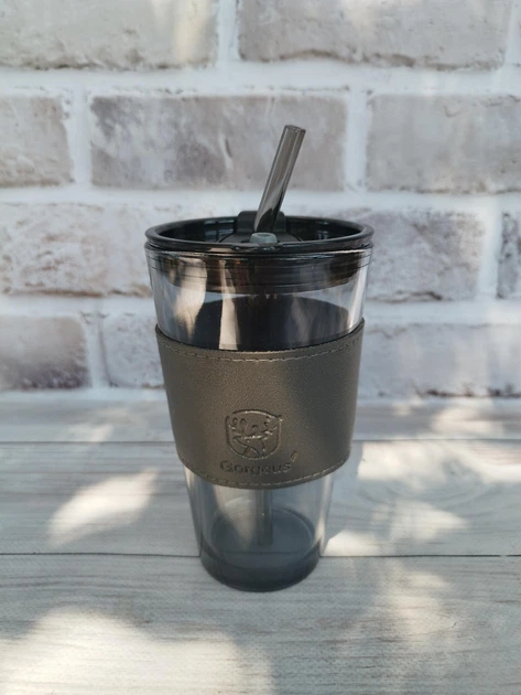 Склянка з трубочкою TS Kitchen скло 450 мл коричневий