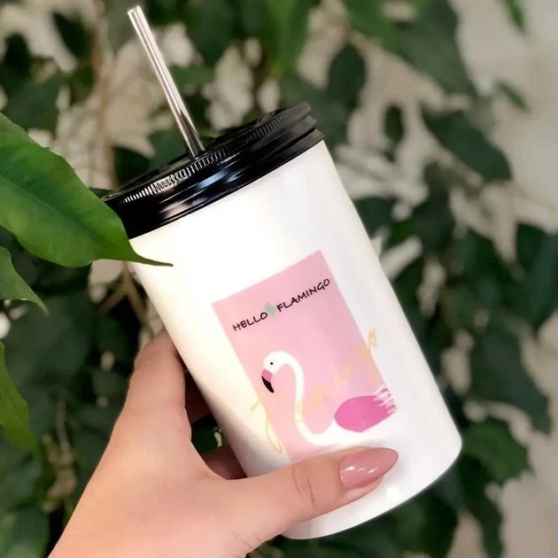 Стакан з кришкою і трубочкою керамічний "Фламінго", 500мл (Стакан для кави)