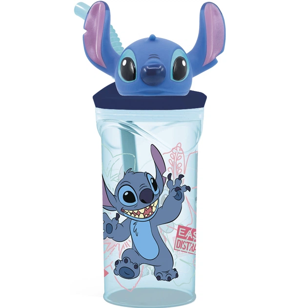 Склянка пластикова з інтегрованою соломинкою та 3D-декорацією 360мл "Stitch flowers" 74869 Stor
