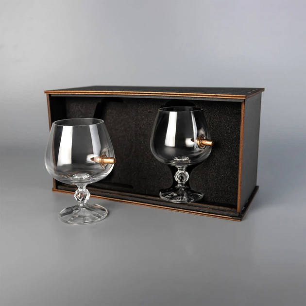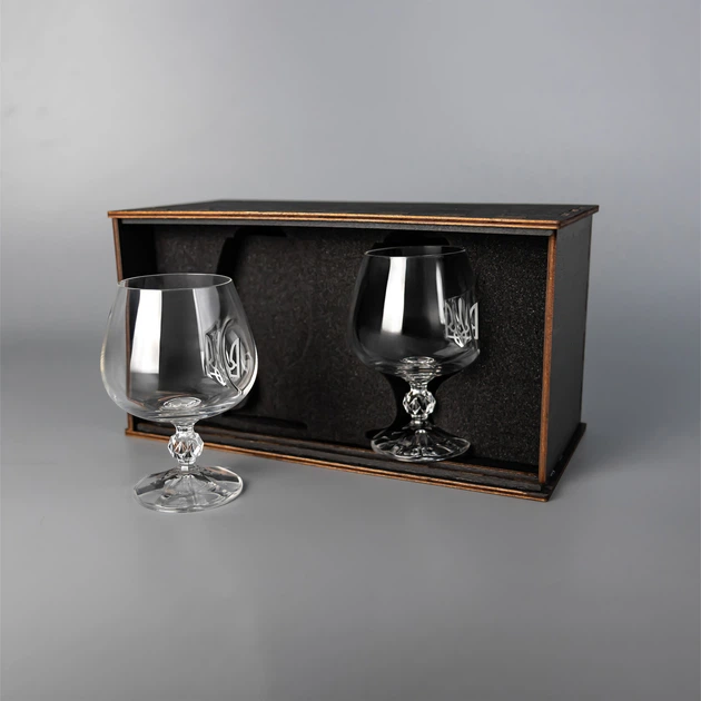 Подарункові келихи коньяку із вставками герб у дерев'яній упаковці | Подарунок чоловікові, братові, куму 225-001-175