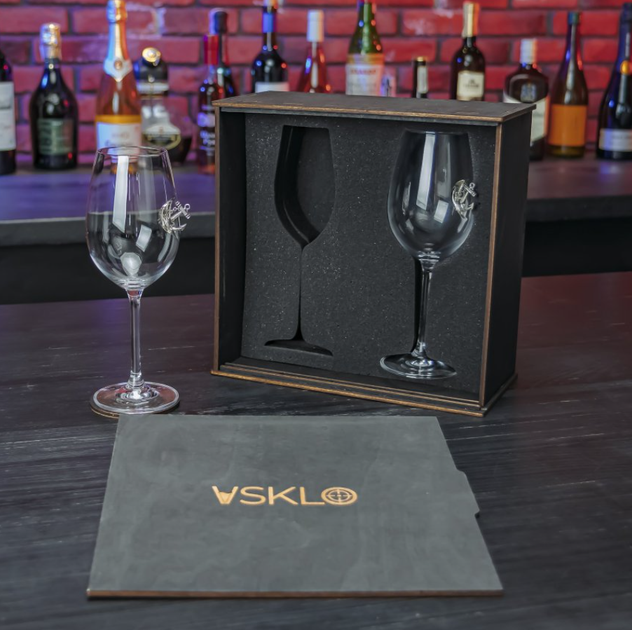 Сувенірний іменний пивний келих з гравіюванням Монограми в дерев'яній подарунковій скриньці