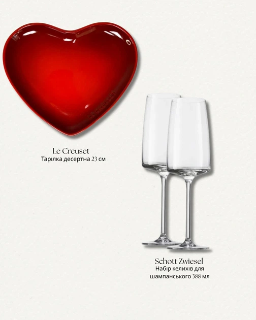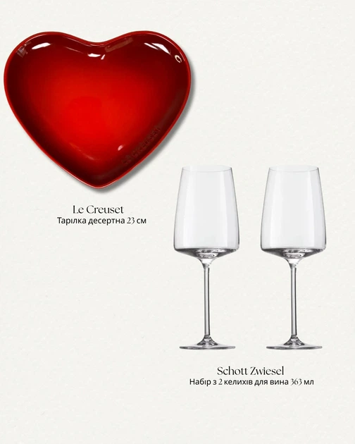 Набір із 2 келихів Schott Zwiesel 388 мл та тарілки десертної Le Creuset Heart 23 см (80255230600099/122430)