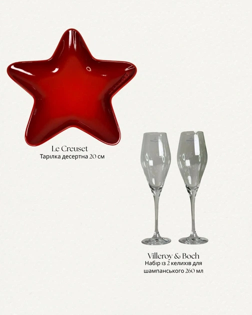 Набір із 2 келихів Villeroy & Boch Toy's Delight 260 мл та тарілки десертної Le Creuset Christmas 20 см (80246200600099/1137
