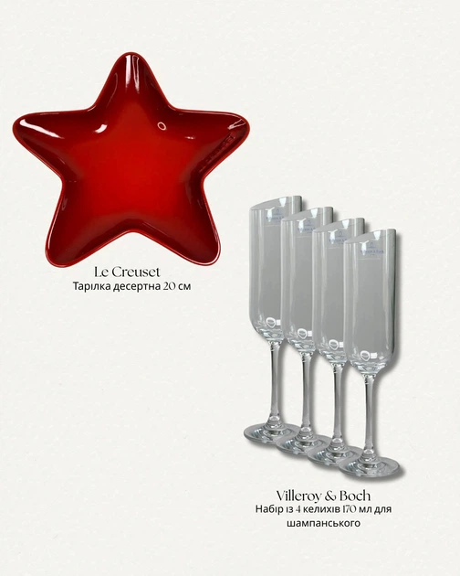 Набір із 4 келихів Villeroy & Boch 170 мл та тарілки десертної Le Creuset Christmas 20 см (80246200600099/1136538130)
