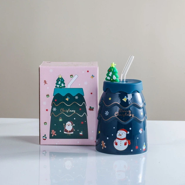 Склянка з трубочкою новорічний Merry Christmas 13329 400 мл синій