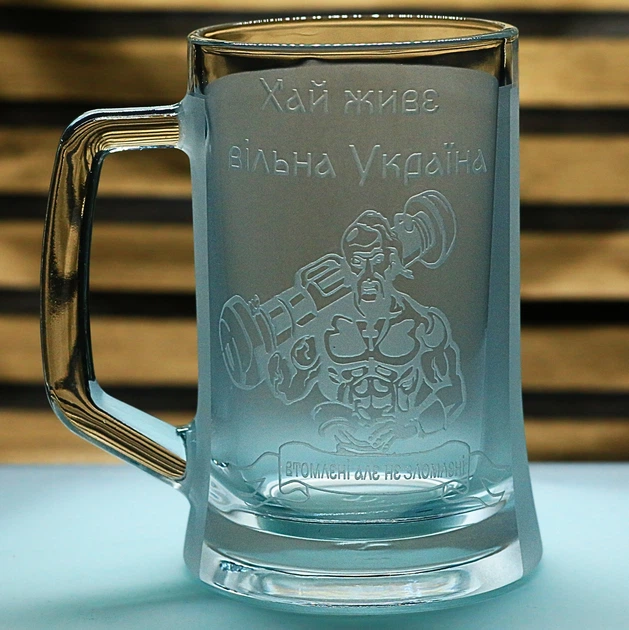 Подарунковий келих для пива з ручкою 670 мл з гравіюванням козака написи Вільна Україна