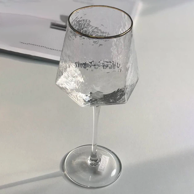 Келих для вина із золотою облямівкою "Прозора бірюза", 450мл
