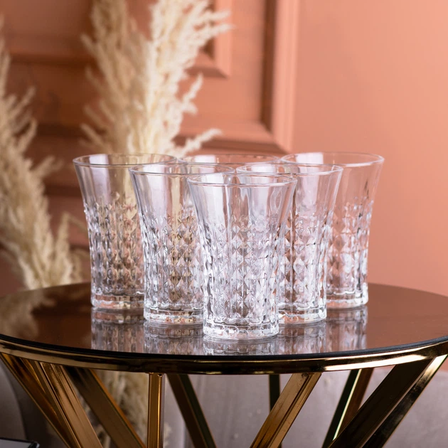 Набір високих фігурних склянок Living Home зі скла 6 штук по 380 мл прозорі