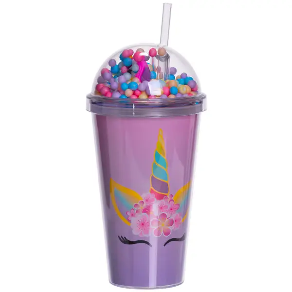 Склянка багаторазова з кришкою та трубочкою,бузковий(HP-18-2V)(WB)