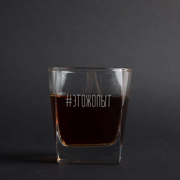 Склянка для віскі "#ЦЕЖОПИС", російська, Дерев'яна подарункова коробка з гравіюванням 4602014