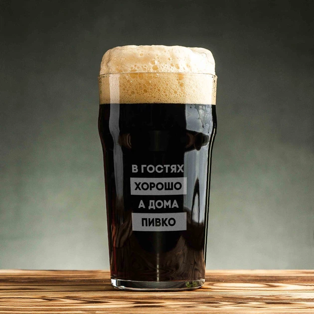 Келих для пива "В гостях хорошо, а дома пивко" у дерев'яній подарунковій коробці BeriDari (HK-st-32) 570 мл