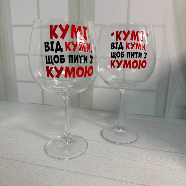 Келих винний 2шт 640мл з надписом "Кумі від куми"