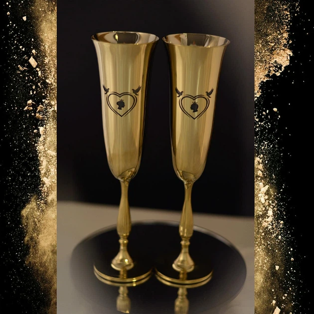 Весільні келихи 2 шт з гарвіюванням Bohemia Fregata 190 мл золото