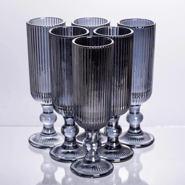 Набір келихів для шампанського 6 штук по 160 мл скляні келихи для ігристого на високій ніжці Сірий