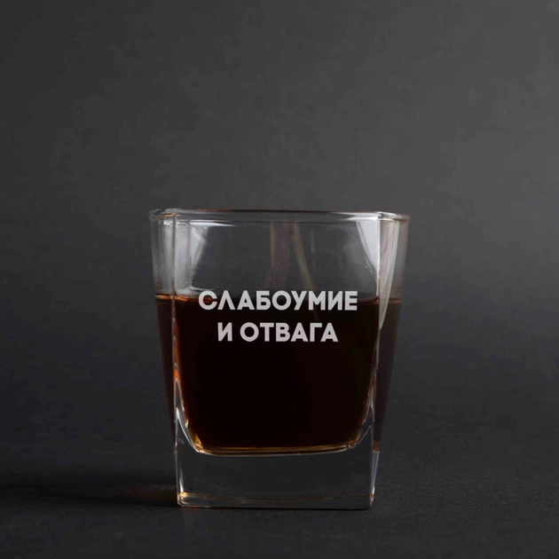 Склянка для віскі "Слабоумство і відвага", російська, Дерев'яна подарункова коробка з гравіюванням 4602133