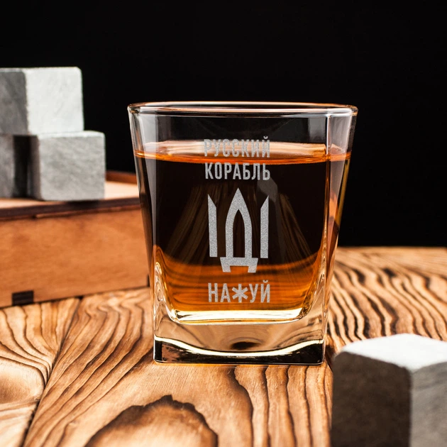 Склянка для віскі "Російський корабель", російська, Дерев'яна подарункова коробка з гравіюванням 4602125