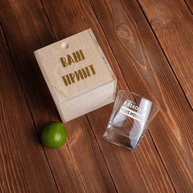 Склянка для віскі "Я філолог мені можна" у дерев'яній подарунковій коробці з гравіюванням 4835131