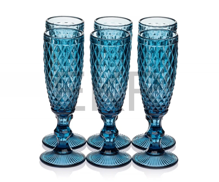 Набір келихів для шампанського з кольорового скла 6шт Glassware 150 мл Синій EK9007