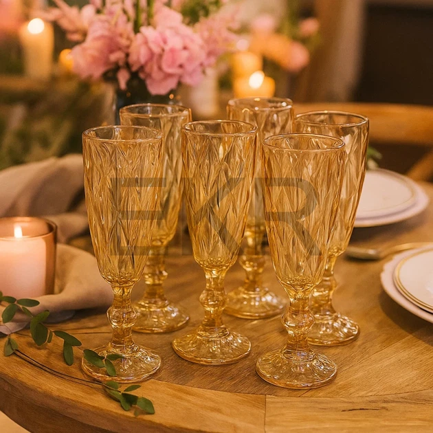 Набір бокалів для шампанського з кольорового скла 6шт Glassware 150 мл Золотий EK12350