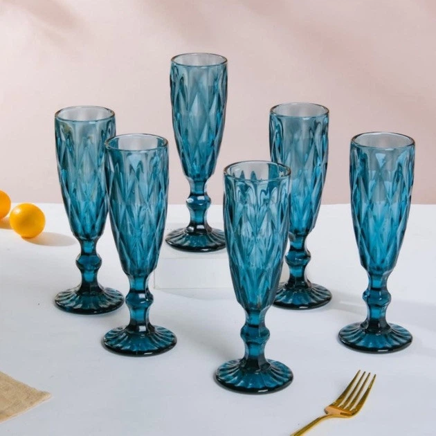 Набір келихів для шампанського A-PLUS 6шт Подарункові скляні фужери для коктейлів 150мл Blue
